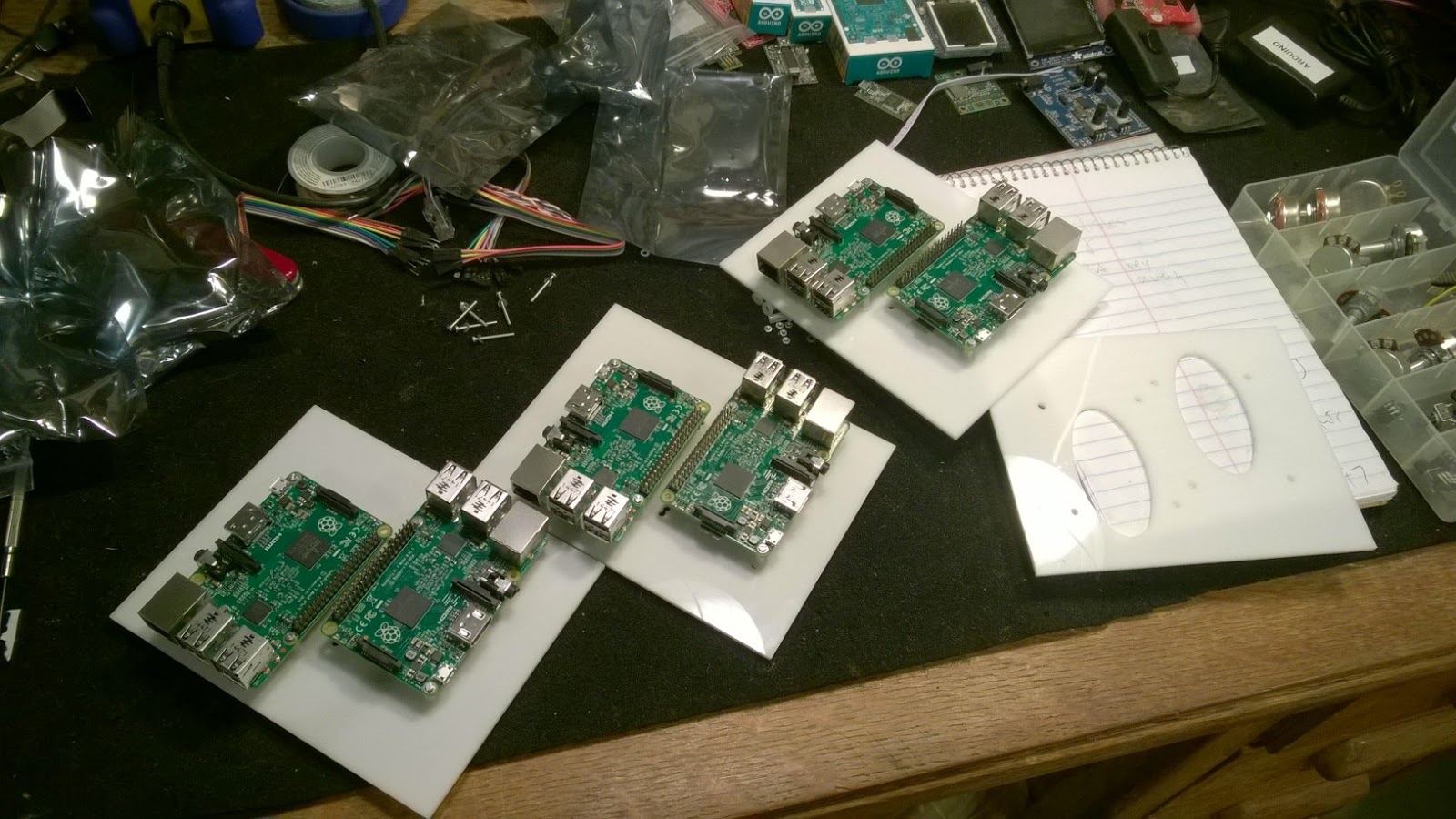 Oh -- there is one more thing left to do, and that's to mount the Pis on their trays. As you can see, we hit a slight gotcha here: